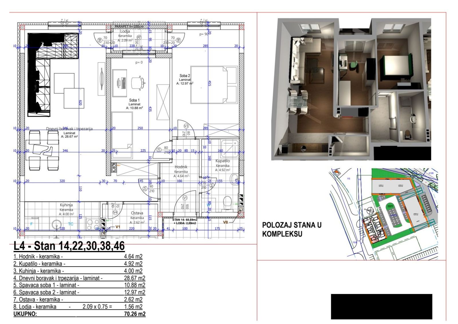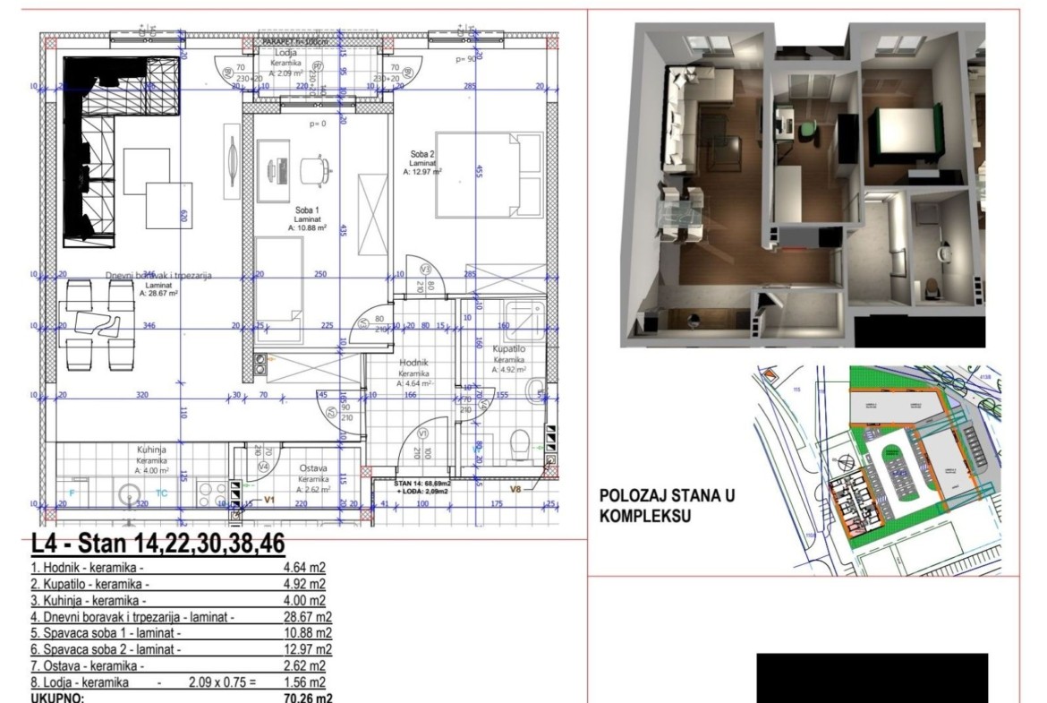 Na prodaju stan trosoban stan od 70m2 u izgradnji u naselju Budžak, ulica Branka Popovića, iza Binga. Stan se nalazi u lameli 4, na prvom spratu, od ukupno pet koliko će imati zgrada.