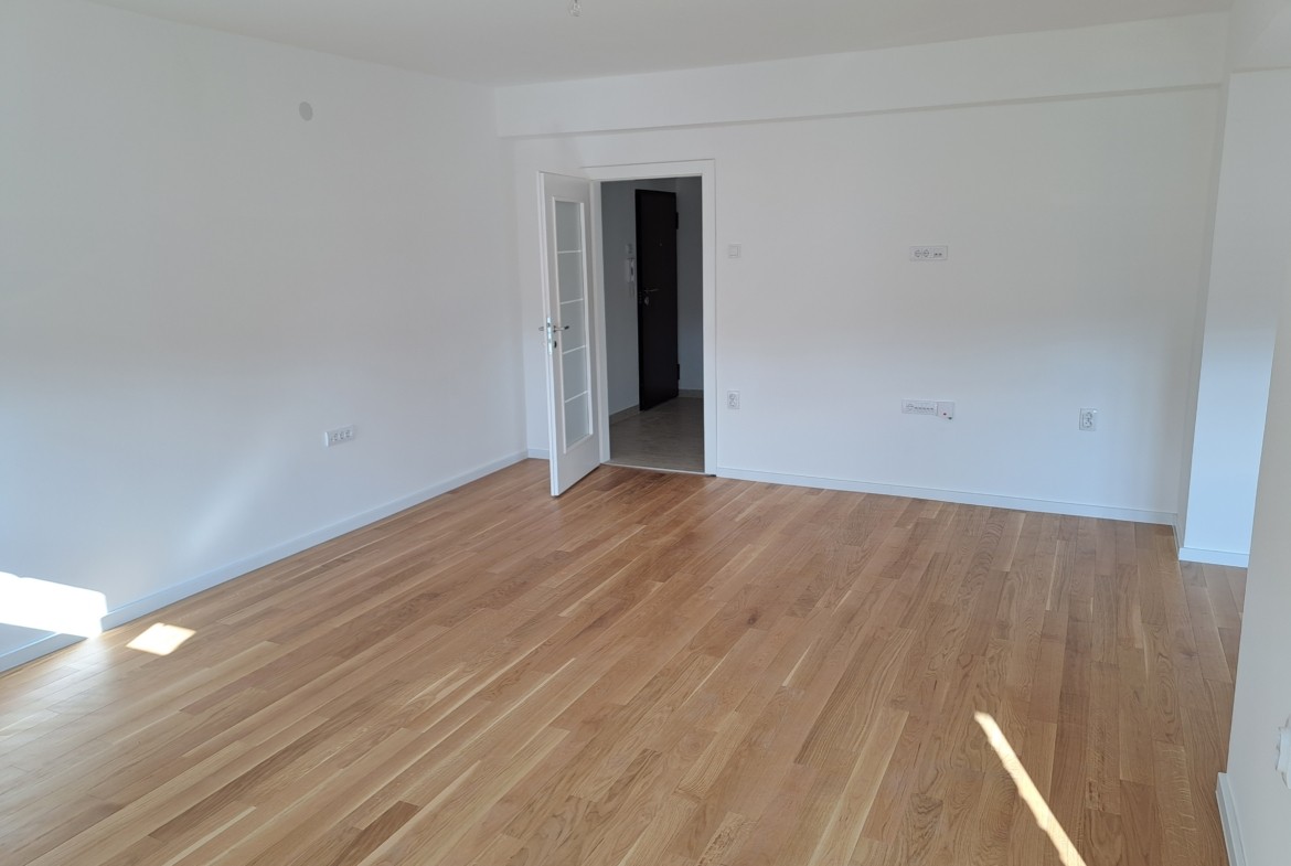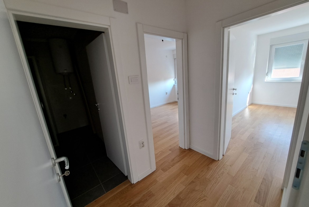 Strukturu stana čini veliki dnevni boravak sa balkonom, odvojena kuhinja, trpezarija, dvije prostrane spavaće sobe, kupatilo, dodatni WC i praktičan hodnik koji odvaja dnevni od spavaćeg dijela.