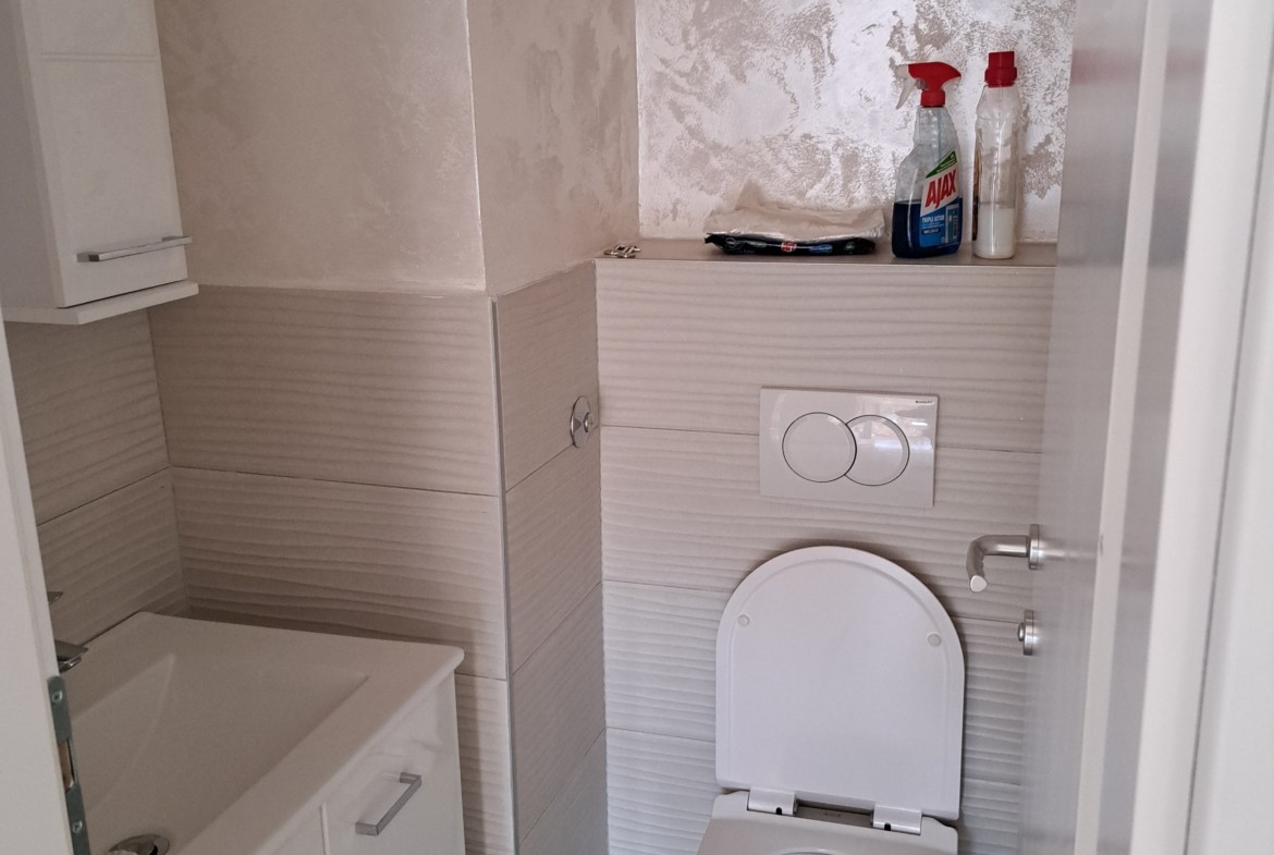 Stan je kompletno renoviran prije dvije godine, promijenjene sve instalacije, cijevi, podovi, stolarija, zidovi, unutrašnja stolarija, što se jasno vidi na slikama.