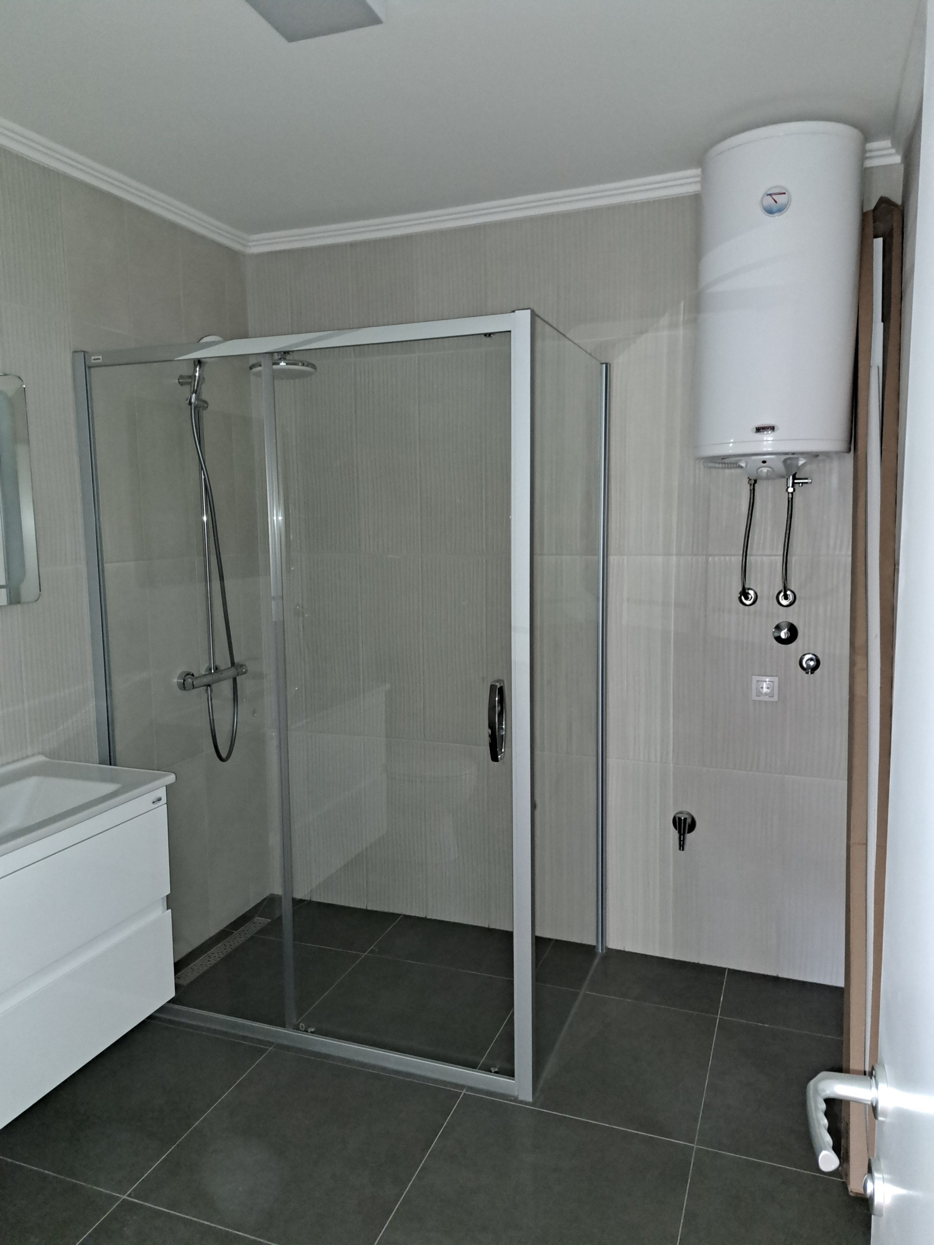 Grijanje u stanu je odjavljeno sa gradske toplane i predviđeno je da se stan grije na struju. Bitno je napomenuti da su instalacije za radijatore ostavljenje, tako da je moguće ponovo priključiti grijanje na gradsku toplanu.