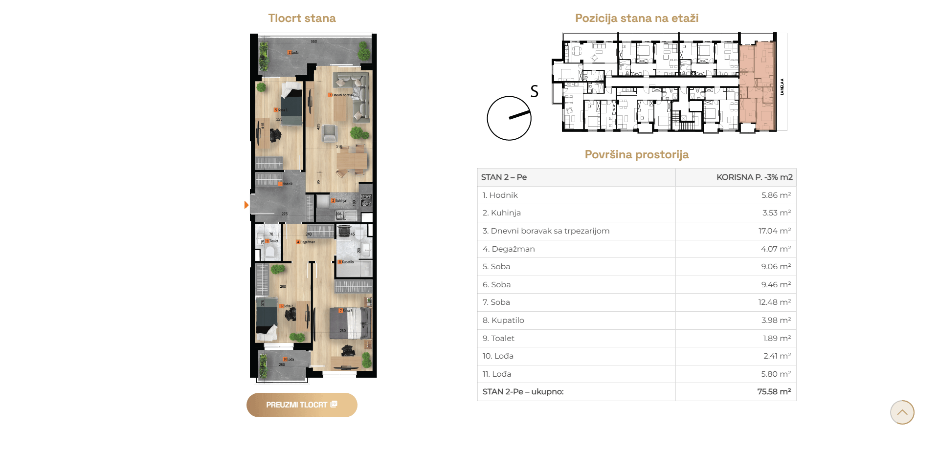Na prodaju četverosobni stanovi različite kvadrature od 75m2 do 78m2 u izgradnji u naselju Budžak.