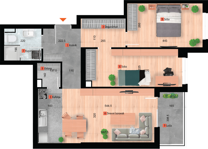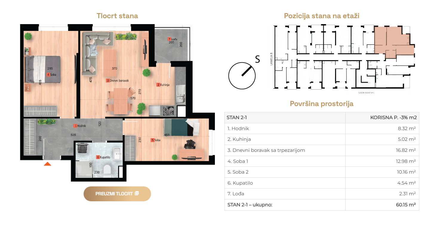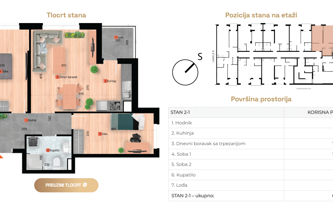 Na prodaju trosobni stanovi različite kvadrature od 55m2 do 65m2 u izgradnji u naselju Budžak. Stanovi se nalaze na različitim etažama od ukupno šest koliko će imati zgrada, dvije lamele A i B.