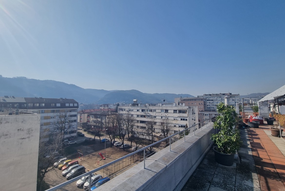 Površina stana je 54m2, nalazi se na petom, posljednjem spratu, sa prelijepim pogledom, a zgrada ne posjeduje lift.