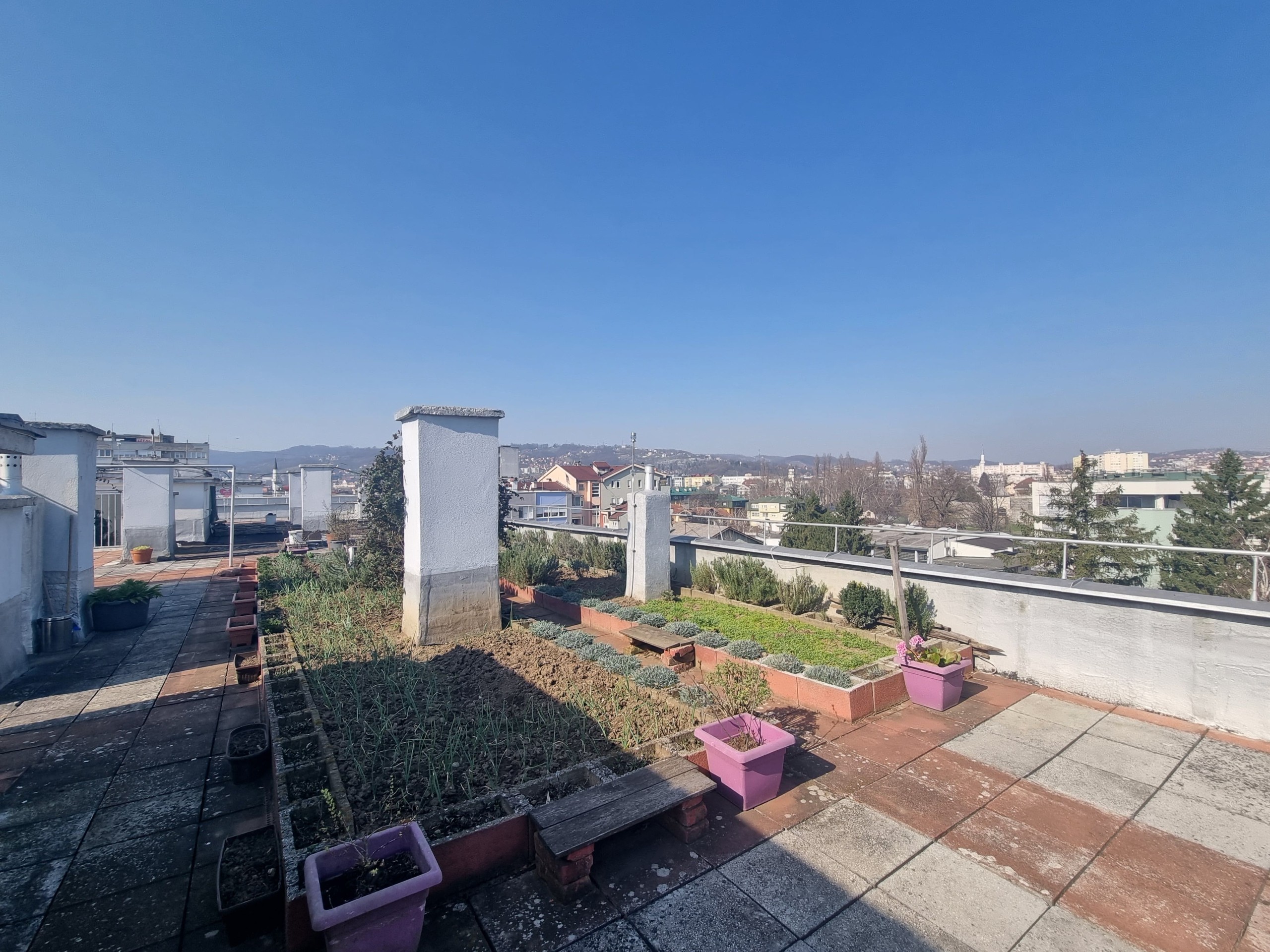 Bitno je napomenuti da je krov zgrade saniran, haustor se redovno održava, ZEV zgrade jako dobro funkcioniše, a stanari su zajednički na krovu zgrade napravili prostor koji se može koristiti (bašta, otvorena ladara, roštilj). ZEV je dobio nagradu od grada za najljepše uređen krov.