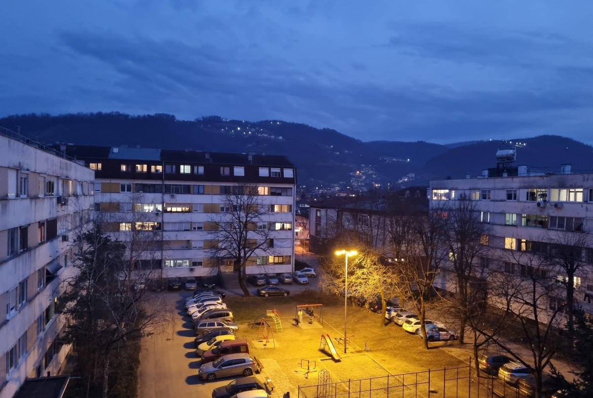 Istočna orijentacija osigurava obilje prirodne svjetlosti tokom cijelog dana, dok pogled na dječije igralište i zelenilo pruža poseban osjećaj udobnosti i urbanog života.