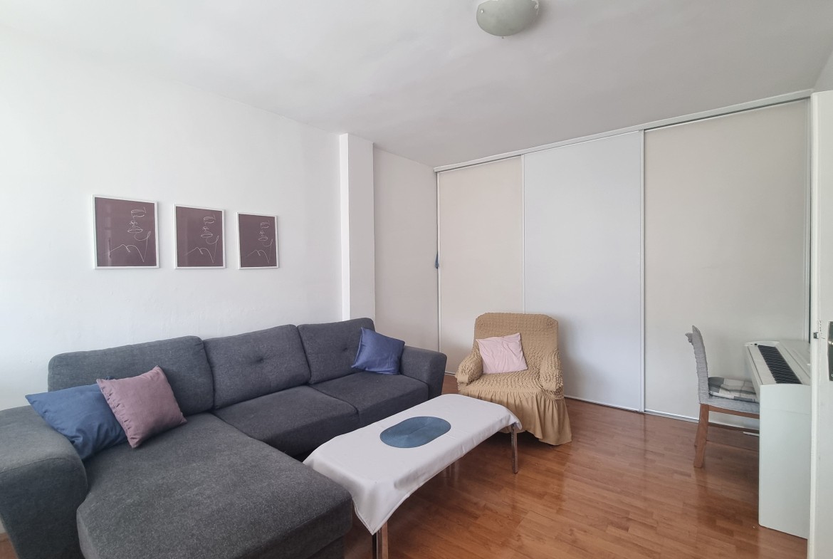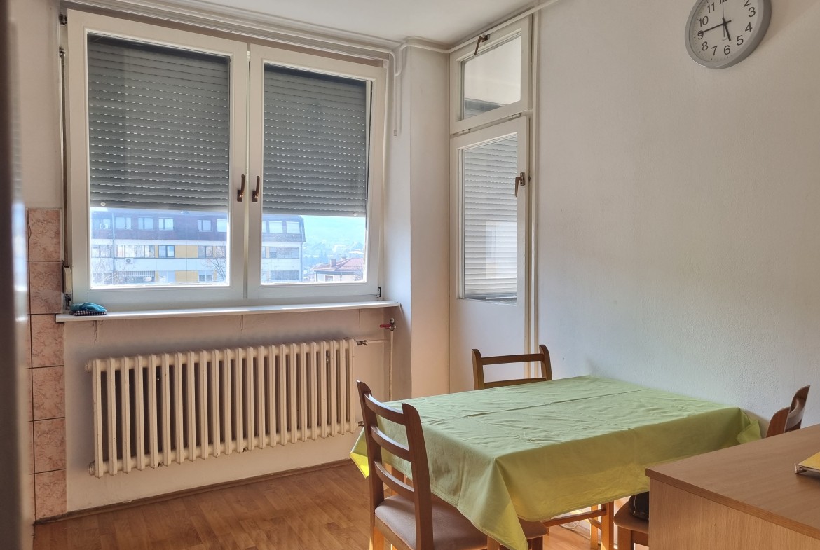 Stan je redovno održavan, odmah useljiv, kupatilo je renovirano prije 15 godina, stolarija je drvena, lakirana, urađeni su laminati u sobi, kuhinji i dnevnom boravku.